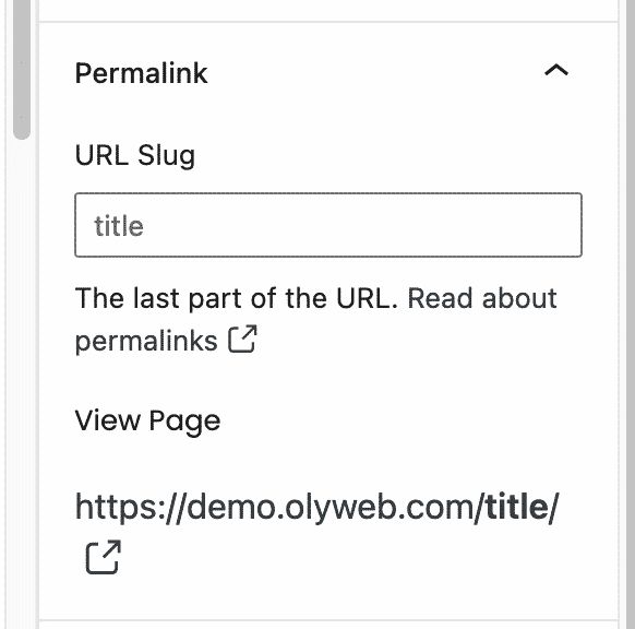 Here you can change the title of your page that shows in your URL. Note that this doesn’t change your actual page title, so you can set your URL to something different from your page title.