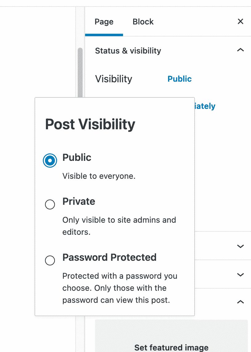 • Password Protected: Protected with a password you choose. Only those with the password can view this post.