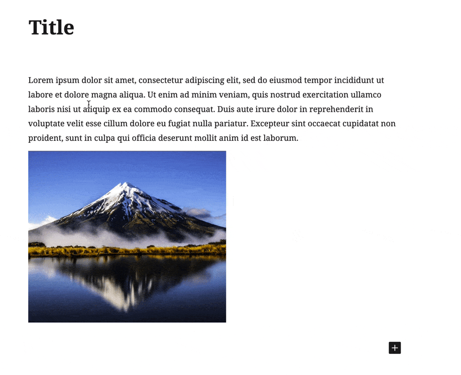 The “Start Writing” block is automatically a Paragraph Block so can get right to writing. Alternatively you can click the Add Block (+) button to the right to choose a different type of block. The Add Block button will show in a few different places when you’re editing: